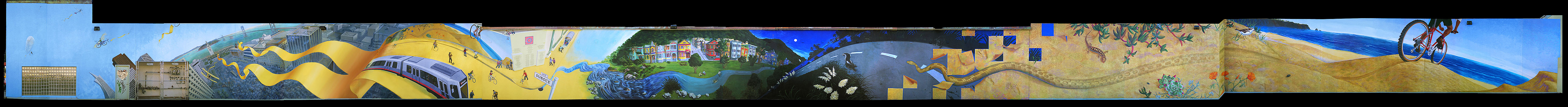 Bike Mural Timeline 1996 — Mural project planning begun 1998 May — Building completed and project begun 1998 November — Mural completed 1998 December — Mural crew awarded Official Commendation by the SF Board of Supervisors 1999 — 1st edition of mural cards published 1999 May — Mural awarded Best Mural award by Precita Eyes Mural Arts Center 1999 August — Mona Caron (artist) & Joel Pomerantz (producer) awarded the Golden Wheel Awards 2006 — 2nd edition of mural cards published (with self-guided tour on backs) 2007 Spring — Maintenance and renewal project 2013 Spring — 3rd edition of mural cards published with new photo quality |